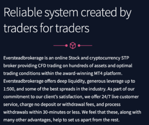 Everstead Brokerage presents itself as a global trading broker offering forex, indices, and cryptocurrency CFDs. At first glance, the platform appears professional, using standard trading terminology and offering what looks like a sophisticated online trading experience. However, deeper investigation reveals multiple redflags, suspicious activity, and risk indicators that suggest this platform may be a scam, fraudulent operation, or rogue broker.