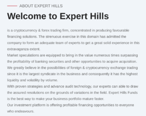 It’s no secret that the online trading space can be a minefield, but Experthills.com shows classic warning signs of a risky or fraudulent operation: