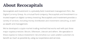 At the time of review, no evidence could be found indicating that Recocapitals is licensed by any recognised financial authority. Operating without regulatory oversight means users may have limited protection if issues arise.
