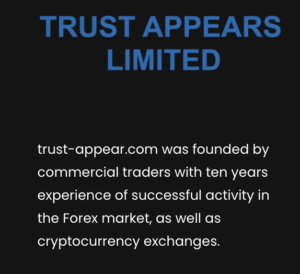 Trust Appears Limited is an online trading platform claiming to offer access to forex and other financial instruments. At first glance, the website looks professional and resembles legitimate broker platforms. However, deeper inspection raises several red flags that traders should not ignore.