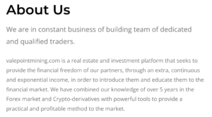 In today’s fast-moving digital investment landscape, the promise of high returns can be tempting. However, not all opportunities are what they seem. ValePointMining.com has emerged as a warning sign for investors, having scammed countless clients with fraudulent promises of lucrative cryptocurrency and mining investments. The reality is grim: victims are left with blocked withdrawals, disappearing customer support, and empty accounts.
