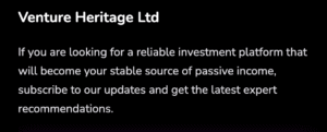 Venture Heritage LTD (ventureheritagelimited.org) has gained attention among online traders due to its advertised access to cryptocurrency, forex, and global index markets. While the platform presents a modern interface and markets itself toward retail investors, a closer examination reveals significant concerns related to regulation, transparency, and operational risk.